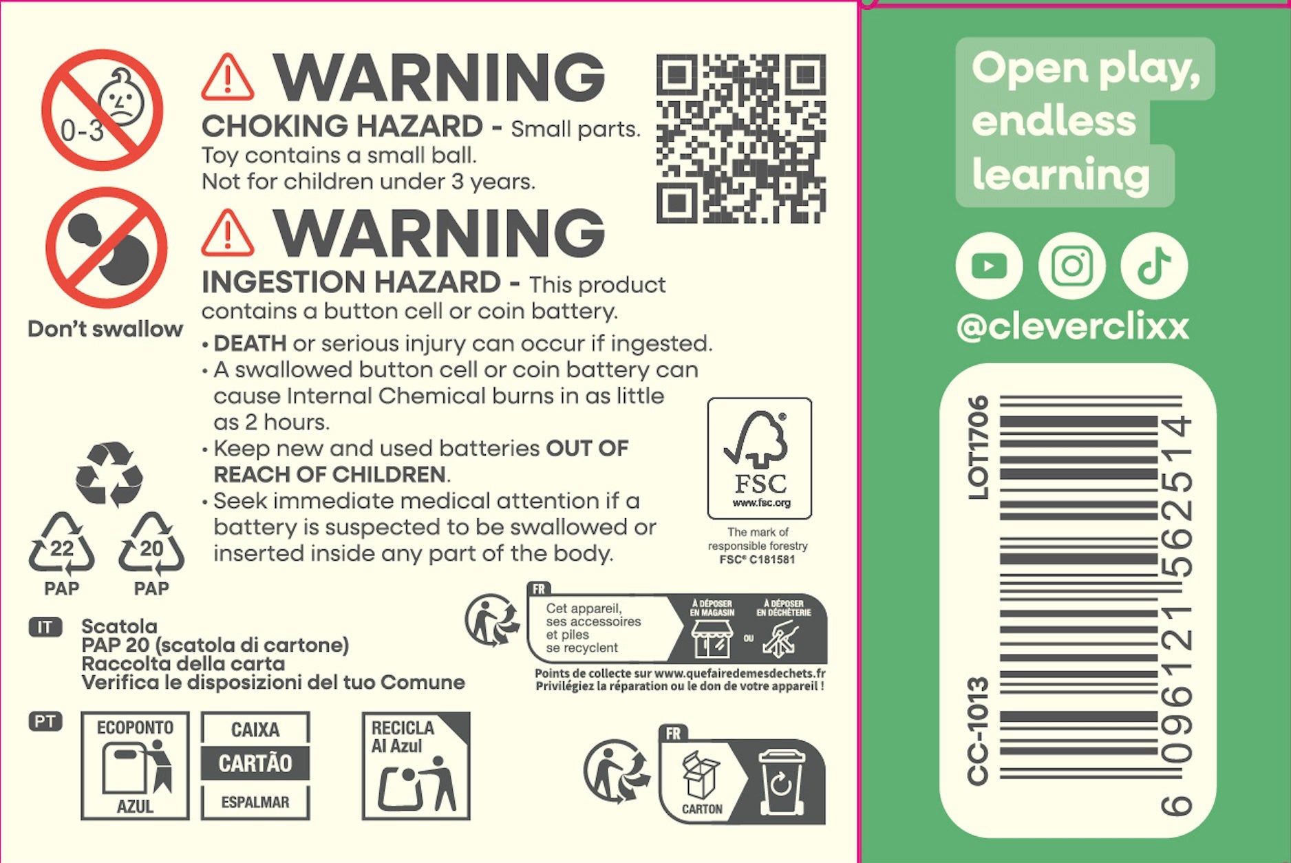Wir bei Cleverclixx entwickeln mit Begeisterung Lernspielzeug, das Neugier, Kreativität undeine lebenslange Liebe zum Lernen weckt. Wir finden, dass Lernen spielerisch, leicht zugänglich und innovativ sein sollte. Deshalb arbeiten wir daran, Spielzeuge zu entwickeln, die Kindern nicht nur Spielspaß bieten, sondern auch die Chance, neue Fähigkeiten zu entdecken und zu erlernen.