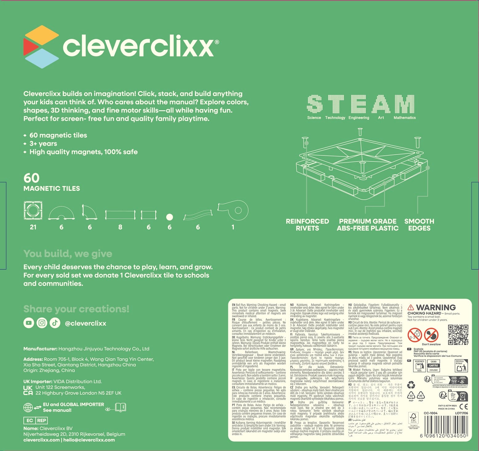 Cleverclixx wächst auch mit Ihren Kindern mit. Ab 3 Jahren können sie damit loslegen, um sich mit dem Konzept 3D-Bauen vertraut zu machen. Wenn sie älter werden, können komplexere Konstruktionen gebaut werden und in der Grundschule dienen die Bausteine sogar als praktisches Hilfsmittel bei Matheübungen.