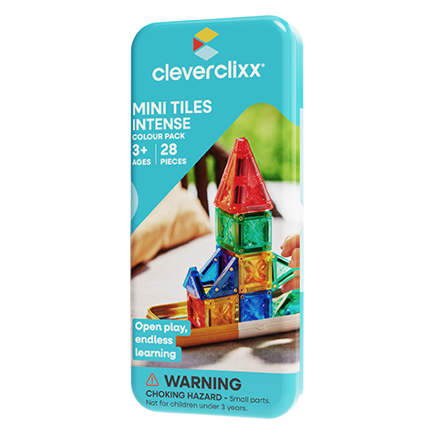 Grootse creaties beginnen klein! Met de Cleverclixx Mini Tiles Pack Intense – 28 stuks ontdekken kinderen hoe krachtig hun verbeelding kan zijn. Deze compacte magnetische tegels zijn speciaal ontworpen voor kleine handen en makkelijk mee te nemen onderweg. Ideaal voor op vakantie, in de auto, bij opa en oma of in een restaurant — waar je ook bent, Cleverclixx zorgt voor creatief speelplezier.